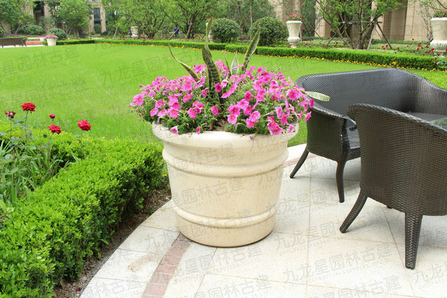 石材花缽可放在臺(tái)階或小區(qū)入口兩側(cè),屹立于景墻之上,廣場(chǎng)的中心,水池邊上,單元入口或擺放于街邊。既可以獨(dú)自成景,與水中的倒影交相輝映,又可以和噴泉一道形成優(yōu)美的旋律。