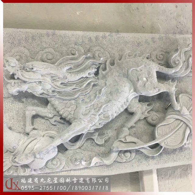 經過漫長的歷史時期石雕麒麟造型從形式到內容也在不斷發生著變化。石雕麒麟雕刻應用廣泛,活躍在民間,特別是其表現形式不僅平面的,立體的,還有舞麒麟那樣活態的展現,色彩裝飾感極強,體現了深厚的民族文化積淀,也證明了人們賦予它對生活的美好期盼的獨特審美意趣。常見的麒麟雕刻圖案有“麒麟獻瑞” “麒麟送子”。