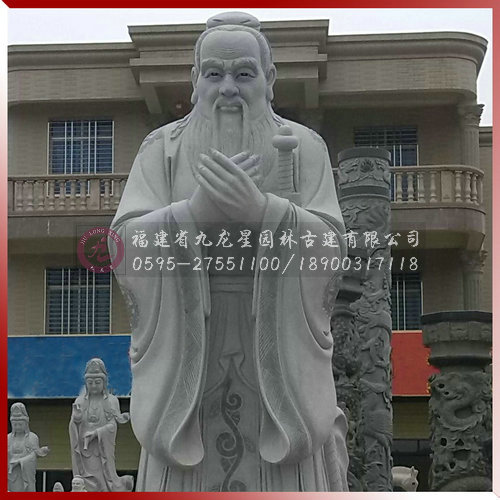 我們的校園孔子雕塑尊重歷史依據、約定俗成印象,準確體現其偉大思想家、教育家及中國傳統文化形象的代表身份,形神俱佳。其神態以唐代吳道子的孔子像為樣本,在形象上,服飾、姿勢以孔子行教圖為依據,年齡掌握在60歲至70歲之間,面部表情溫文爾雅。體現出孔子莊嚴慈祥,謙和智慧的萬世師表形象。
