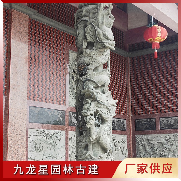 盤(pán)龍柱石雕 青石雕龍柱 寺廟石雕龍柱的應(yīng)用 九龍星
