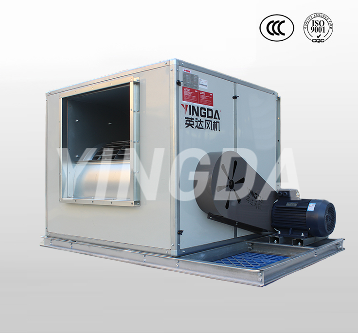 1.1.HTFC型柜式離心風(fēng)機(jī)是一種高效率、低噪聲箱式離心風(fēng)機(jī)。產(chǎn)品由低噪聲前傾多翼離心風(fēng)機(jī)、電機(jī)、軸承、傳動(dòng)件、消聲型箱體等組成。根據(jù)安裝位置的不同,提供12種不同的角度的進(jìn)出風(fēng)口位置,以滿足用戶不同的安裝需要。根據(jù)消防與通風(fēng)的不同要求分A式和B式兩種類型,A式電機(jī)裝在箱體外,用于消防排煙,并經(jīng)國家消防裝備監(jiān)督質(zhì)量檢驗(yàn)中心按GA211-2009《消防排煙風(fēng)機(jī)耐高溫試驗(yàn)方法》進(jìn)行耐高溫試驗(yàn),能在280℃高溫條件下連續(xù)運(yùn)行30分鐘以上;B式電機(jī)裝在箱體內(nèi),用于通風(fēng)換氣。